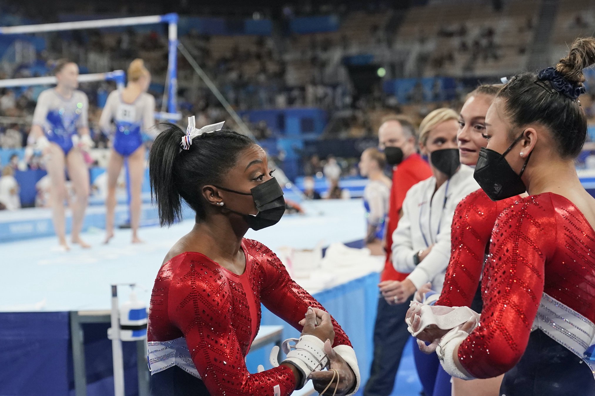 Sunisa lee, jordan chiles and grace mccallum are still competing in tokyo.
